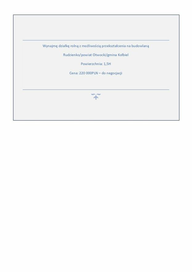 Lokalizacja: Rudzienko, Powiat Otwocki, Gmina KołbielRodzaj działki: Rolna z możliwością przekształcenia na budowlaną